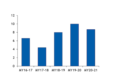Ukrainian corn exports have remained strong over the first four months of the 2020-21 marketing year, despite a year-on-year decrease of 6mn t in production. But it will be difficult for the country to maintain the current export pace, given strong competition from other global suppliers.