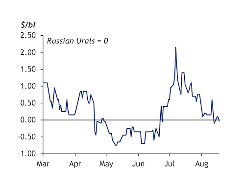 A lower price for Johan Sverdrup has enabled it to compete with Urals in the Russian crude's traditional markets. The fob Mongstad price of Johan Sverdrup this week dropped below the delivered-Rotterdam price of Urals. It has averaged a 15¢/bl premium to the Urals price so far this month, compared with a $1/bl premium in July (see graph). Poland took no Johan Sverdrup until March, but has since imported 2.6mn bl. And the 600,000 bl Kmarin Rigour tanker is en route to deliver Germany's first-ever seaborne cargo of the Norwegian grade. But buying elsewhere in northwest Europe is little changed, with key North Sea customers in the UK and Netherlands still accounting for only 7pc of the crude's exports this year.