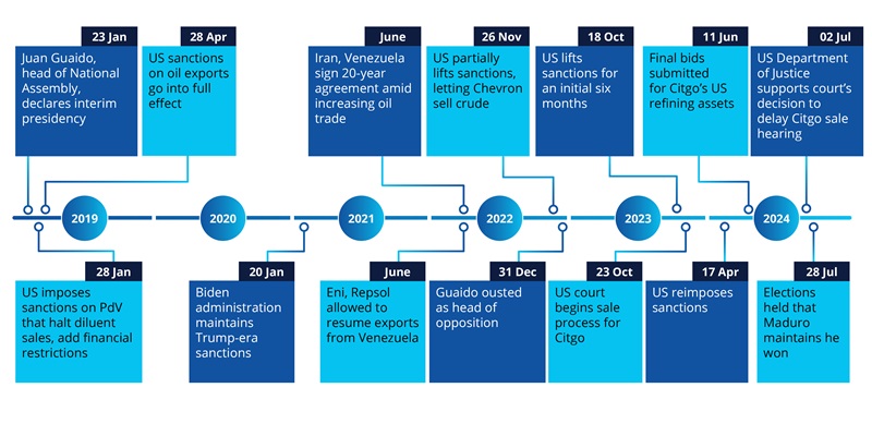 US sanctions on Venezuela’s national oil company PdV, first imposed on 28 January 2019, cast another layer of geopolitical uncertainty onto the international oil market. The sanctions take effect in stages, gradually intensifying their impact on the Opec country’s imports and exports.