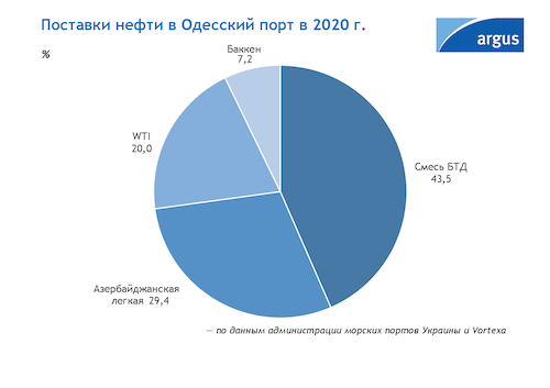 В 2020 г. в страну завозилась в основном Смесь БТД, которая схожа по качеству с Азербайджанской легкой, в то время как в 2019 г. основным сортом была Азербайджанская легкая. Суммарно в январе — декабре для Кременчугского НПЗ было закуплено около 849 тыс. т азербайджанской нефти, на 181 тыс. т больше, чем в 2019 г.
