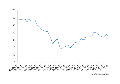 Котировки продукта французской спецификации на базисе cif Северо-Западная Европа в июле повысились на $6,67/т относительно июня, до $603,48/т.