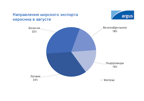 Танкерные отгрузки керосина из портов России в августе увеличились до 99 тыс. т с 78,5 тыс. т — в июле, по данным системы мониторинга судоходства Vortexa. «Новатэк» нарастил экспорт продукта на фоне восстановления спроса на авиатопливо в Европе. На долю этого продукта приходится более 80% экспортных отгрузок из портов России.