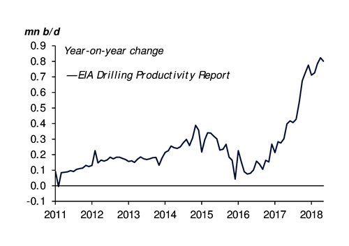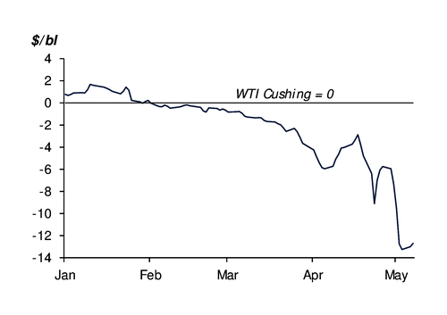 US output is expected to rise by nearly 1.4mn b/d this year and a further 1.1mn b/d next year, with much of the growth coming from the Permian, the EIA says. But the higher production is outstripping pipeline takeaway capacity, pushing WTI priced at the Midland hub in Texas to a discount of around $13/bl to WTI Cushing. And major new pipelines to move the rising supply are not expected to come on stream until next year.