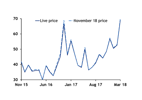 With increasing price volatility as wind and solar sources claim a larger share of the mix, batteries will help to smooth out power generation. The standard deviation of balancing market prices so far this year is £32.17/MWh, only slightly higher than 2017's £31.16/MWh. But new reforms could soon boost volatility further. Balancing market prices have also increased outright, increasing the market's attractiveness.